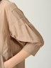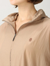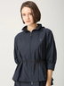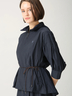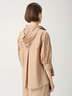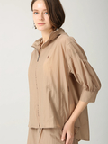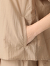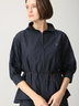 スタンドカラーの中には隠しフード付き、ブラウスのように軽いのでコートインにもおすすめ。