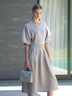 シンプルながらもメリハリのあるシルエットで、エレガントな女性らしい美スタイルに決まる1着です。