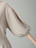 ポリエステルをプレーティングすることによりギャザーでは表現しにくい膨らみのあるシルエットを作り出しています。