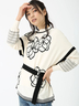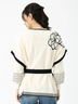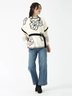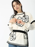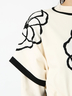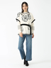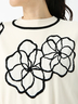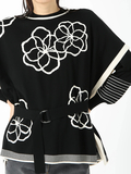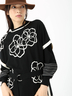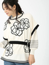 インターシャによる大胆なフラワーモチーフが魅力で、同素材の袖口ボーダーセーターと合わせれば、より洗練されたレイヤードスタイルを楽しめます。