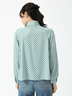 小さなドットをスクエア状に並べた壁紙調のジオメトリック柄で、シンプルながらも奥行きのある表情を見せます。