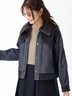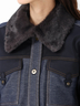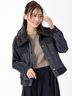 襟元のミンク調エコファーが女性らしいアクセントに。