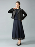 <Hybrid Elegance>ネイビーからインクブルーのグラデーションをベースに、カカオブラウンのメタリックなシンセティックレザーをコーディネートする艶やかなスタイル。