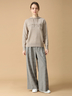 綿アクリルの混紡糸とポリエステル糸を天竺目で接結したダブルフェイスニットのプルオーバー。