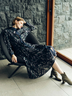 繊細なジョーゼット素材を使用し、深みのあるネイビーにグリーンが映えるシックなプリントワンピース。