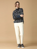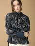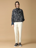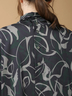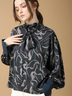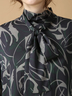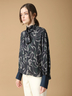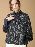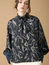 繊細なジョーゼット素材を使用し、深みのあるネイビーにグリーンが映えるシックなプリントブラウス。