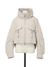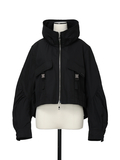 程よいハリと弾力を持つメモリーカルゼ素材を使用し、立体的なフォルムが際立つショートジャケット。