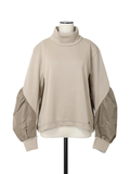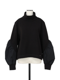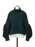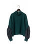 立体感のあるスリーブの異素材切り替えがスタイリングのアクセントになるニット。