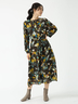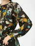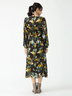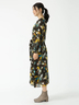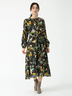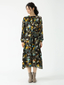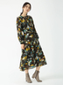 襟元から袖にあしらったメロー仕様によるフェミニンデザインが魅力のドレス。