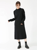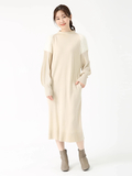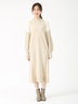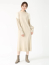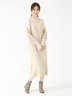ヘアリーなフェザーヤーンと梳毛糸を交編し、ふわふわモコモコした表情が華やぐオーラニットワンピース。