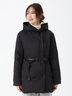 ステッチを省いた滑らかなデザインに、合皮パイピングやウエストを引き締める合皮ベルトをあしらい、エレガントな印象に仕上げました。