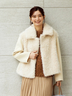 カシミヤゴートのような毛並みと、ふんわりとした巻き毛のボリュームがラグジュアリーな雰囲気を漂わせる一着。
