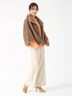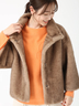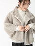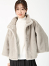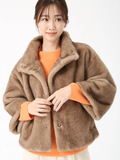 ミンクのように滑らかな毛並みと、艶やかな光沢を持つエコファーが贅沢な存在感を放つコート。