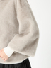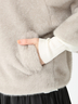 温もりあるラグジュアリーなヘアリー素材、ブロッキングパターンのデザイン&柔らかく包み込んだ量感フォルム、安らぎのあるエクリュを軸とした穏やかなカラーパレットを表現。
