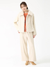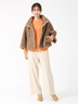 温もりあるラグジュアリーなヘアリー素材、ブロッキングパターンのデザイン&柔らかく包み込んだ量感フォルム、安らぎのあるエクリュを軸とした穏やかなカラーパレットを表現。