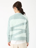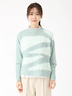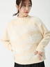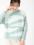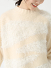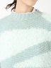 ロングフェザーヤーンと厳選されたラムウールを交編し、ふわふわとしたヘアリーな質感と立体感のある編地をインターシャで表現。