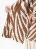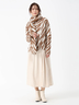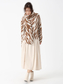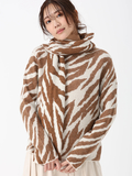 特殊なブークレ糸と梳毛糸を交編し、ダブルジャカード編みで表現したゼブラ柄の大判ストール。