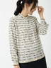 配色のロゴプリントがモダンで洗練された雰囲気を演出するブラウス。