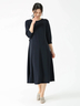 軽量でふくらみのある二重織り素材を使用し、しなやかなドレープと防シワ性を兼ね備えたワンピース。