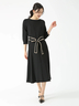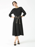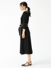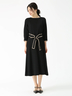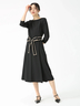 ウエストの配色リボンベルトは取り外し可能で、シルエットや雰囲気を自在にアレンジ。