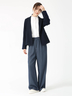 デニムパンツの特徴を取り入れたセミワイドパンツ。ステッチやリベット使いがカジュアル感を演出しつつ、ストンと落ちた美しいシルエットでエレガントに履きこなせる逸品。