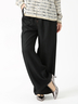 ウエストはオールゴム仕様でストレスなく穿け、ワイドシルエットでもすっきり見える縦落ちラインが特徴です。