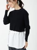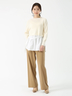 ハイゲージで編み立てたワッフル編みと、裾から覗くシャツ素材の切り替えがさりげないアクセントに。
