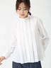 フロントに施した繊細なタックが縦ラインを強調し、ふんわりとしたシルエットでもすっきり見えるバランスに。