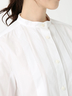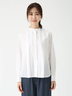 程よいハリ感とナチュラル感が特徴のブロード素材。身頃のタックやラウンドヘムがシンプルながら拘り感を演出。レイヤードスタイルに最適なバンドカラーシャツ。
