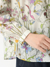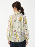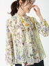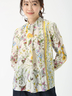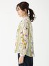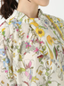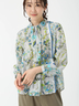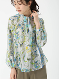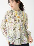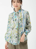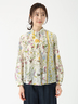 クラシカルなフラワープリントと配色ラインが印象的なブラウス。