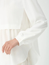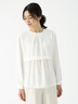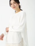 プリーツの表情が装いに奥行きを添える、上品な印象のパールプリーツブラウス。
