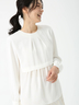 ウエストからの切り替えデザインで、レイヤード風に見える一枚仕立てがさりげないアクセントに。