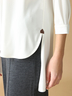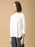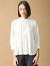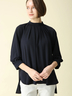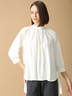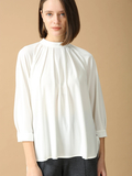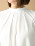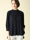 胸元のタックドレープが華やかさを添え、シワになりにくく扱いやすいのも魅力のトップス。