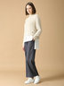 <Pale-tone Natural>質感の良さが魅力のウール素材を使用し、ハイブリッドにデザインしたアイテムでコーディネートするナチュラル&フェミニンスタイル。ペールトーンのワントーンコーディで女性らしさを演出しながら、意匠アイテムとの組み合わせで優しくナチュラルな印象に仕上げています。