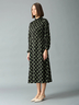 小さなグリーンの幾何柄をドット状に配した、フェミニンで上品なオリジナルプリント。