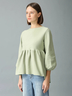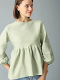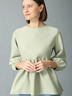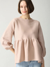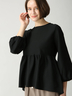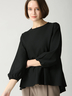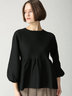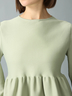 ポリエステルのストレッチヤーンを高密度に編み上げ、美しいフレアディテールを表現したフォルムニット。