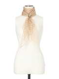 透け感のある素材にラメとスパンコールを散りばめた刺しゅうが華やかに映えるスカーフ。