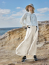 落ち感のある素材が脚のラインを拾いにくく、軽やかで上品なシルエットを演出。