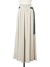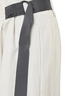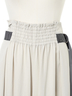 ウエストのギャザーと配色ベルトがアクセントとなり、シンプルながら表情のあるディテールに仕上げています。
