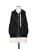 鈍い光沢感とイレギュラーなシボ感が特徴のサテン素材を使用したグロスグレインジレベスト。